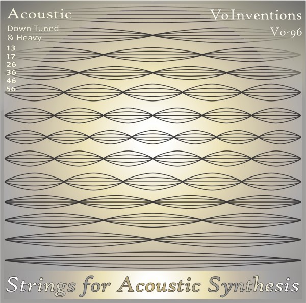 Acoustic Synthesis Strings have magnetic properties that are optimized for electromagnetic control of vibration and timbre. They are designed to look, feel and sound like a good set of standard acoustic guitar strings. The wound strings incorporate iron alloys and silver to achieve the special properties. Long lasting, their tone mellows very gradually with age.